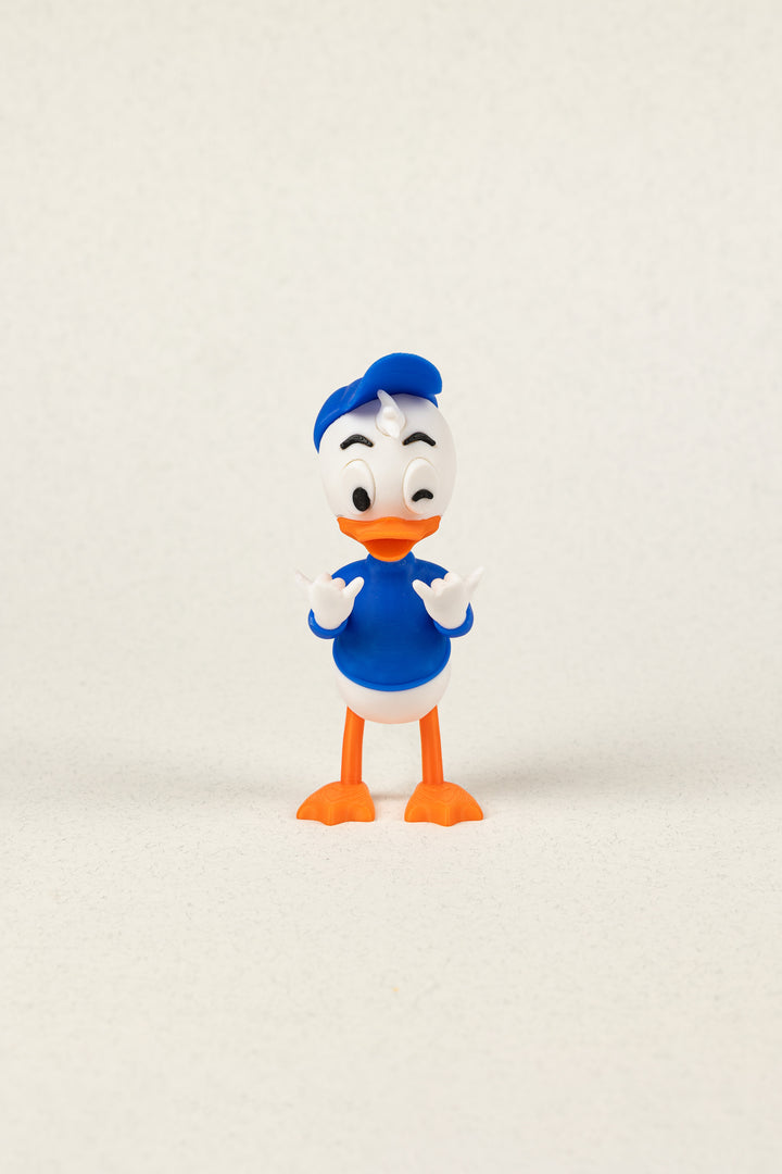 ДетальнішеЦя яскрава 3D-друкована фігурка зображає Гьюї — одного з веселих племінників Дональда Дака. Він одягнений у червону сорочку та червону кепку, що надає йому впізнаваного стилю. Іграшка ретельно продумана: великі виразні очі, помаранчевий дзьоб і лапки створюють приємний контраст із білим тілом. Фігурка має приємну текстуру, добре тримає форму й виготовлена з якісного пластику, що робить її стійкою до подряпин і пошкоджень. Гьюї — чудовий вибір як для колекціонерів, так і для дітей. Він відмінно доповнить полицю з улюбленими героями мультфільмів і стане яскравим елементом декору. Крім того, іграшка підходить для використання у творчих фото, ігор чи навіть як оригінальний подарунок.