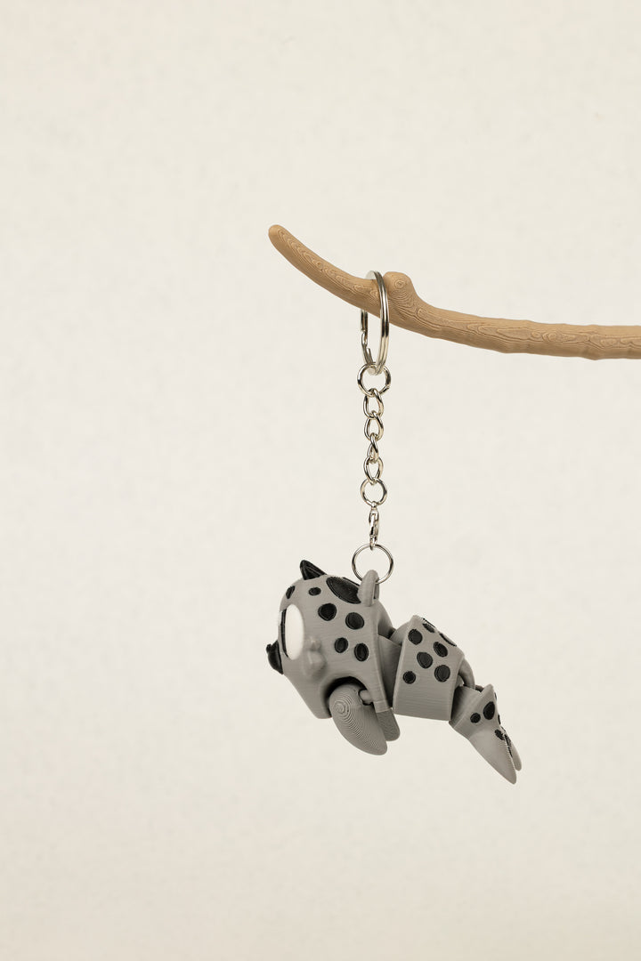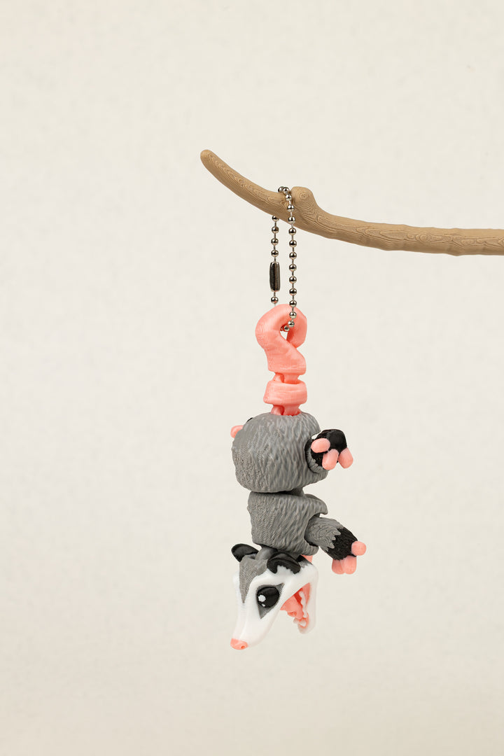 ДетальнішеЦей милий брелок у формі опосума виготовлений із високоякісного пластику та надрукований на 3D-принтері, що робить його деталізованим і реалістичним. У нього сіре пухнасте тільце, чорні лапки та рожеві пальчики, а біла мордочка з великими чорними очима додає особливого шарму. Брелок оснащений надійним металевим ланцюжком, завдяки чому його зручно чіпляти на ключі, рюкзак або сумку. Цікавий факт про опосумівОпосуми — єдині сумчасті ссавці, що мешкають у Північній Америці. Вони відомі своєю унікальною здатністю «прикидатися мертвими», коли відчувають загрозу. Ця поведінка допомагає їм уникати хижаків, а їхній довгий хвіст часто використовується як додаткова «рука» для утримування гілок і перенесення матеріалів для гнізда.