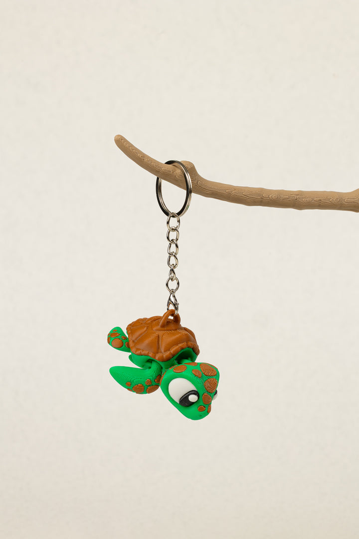 ДетальнішеМила і реалістично виконана морська черепашка з великою коричневою панцирною спинкою та яскраво-зеленим тілом. На голові та лапках розташовані коричневі плямки, що робить її більш природною. Великі білі очі з чорними зіницями надають їй виразного та дружнього вигляду.