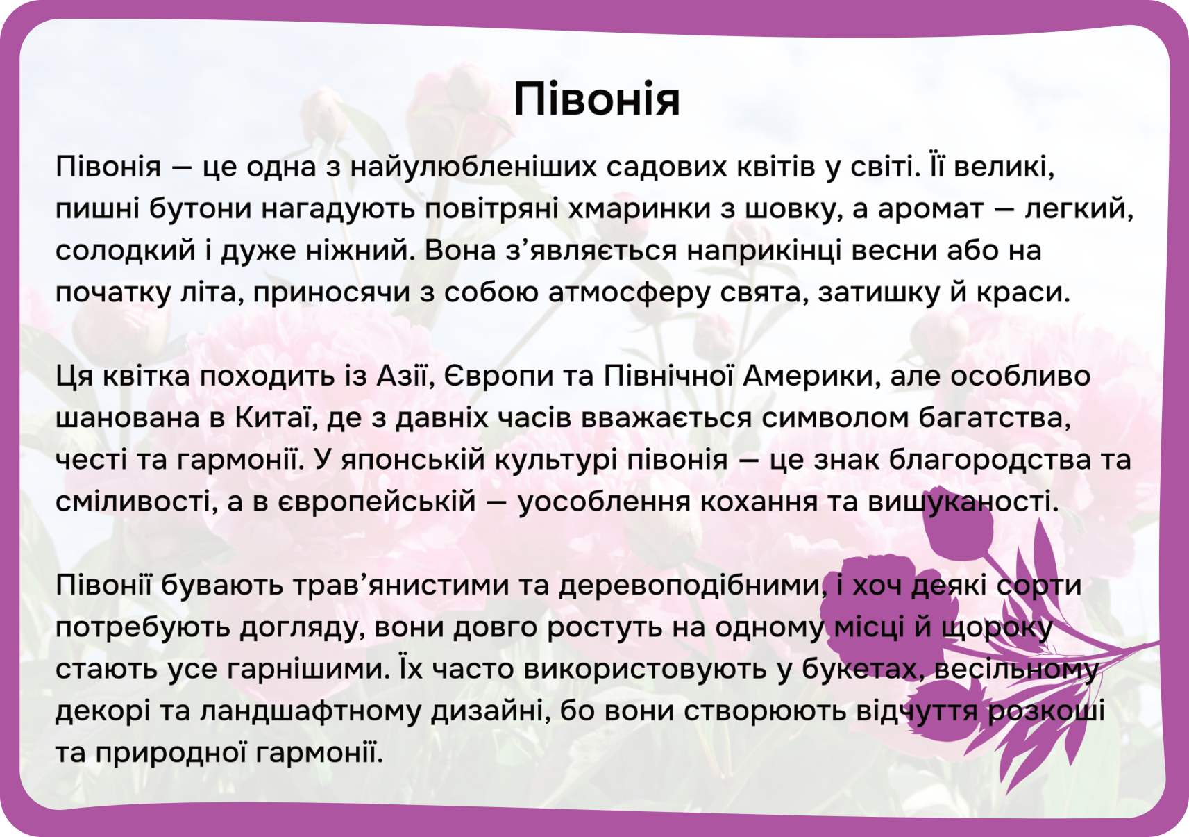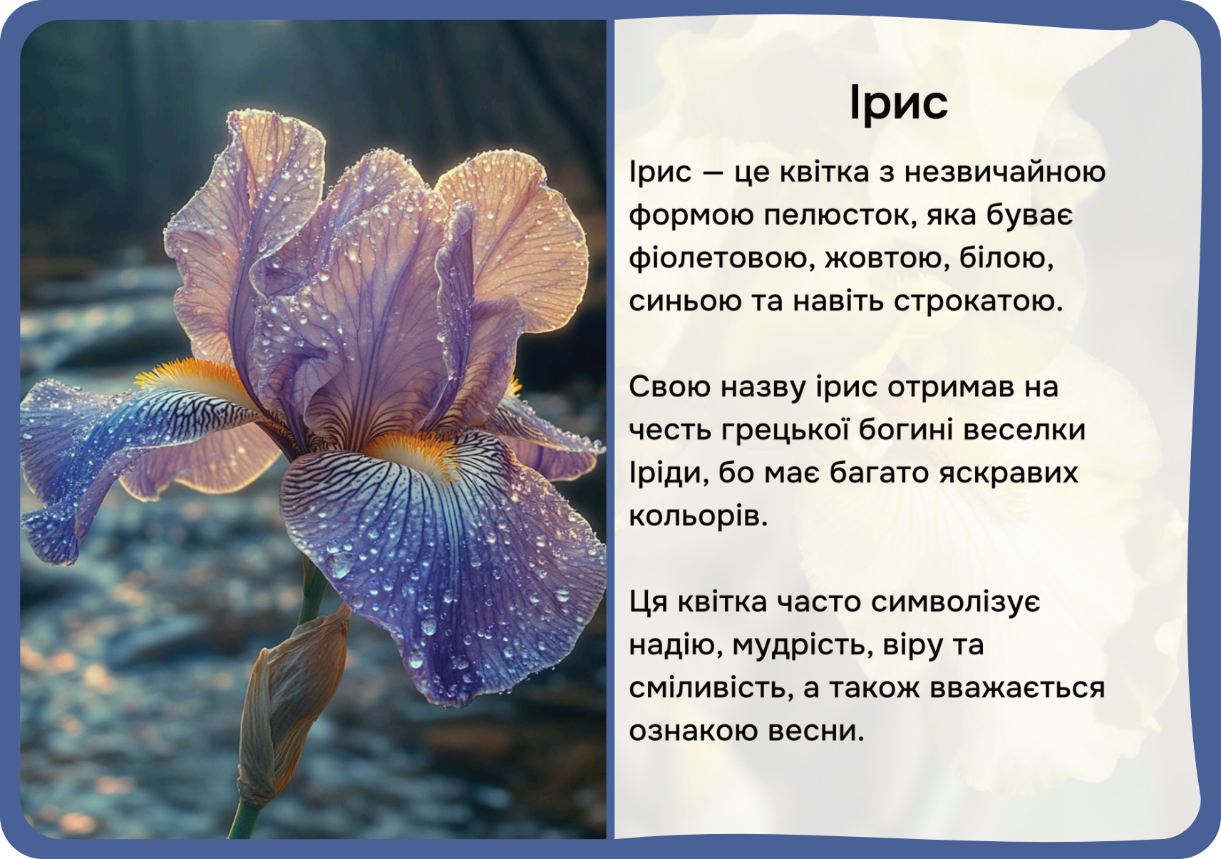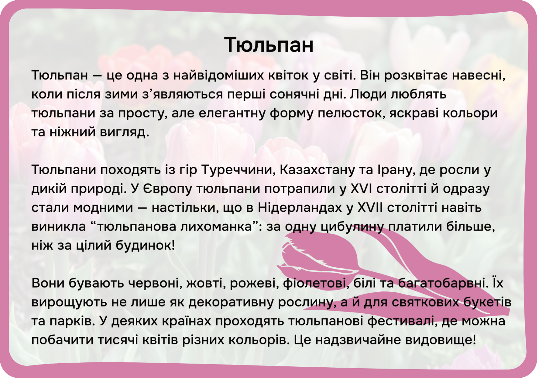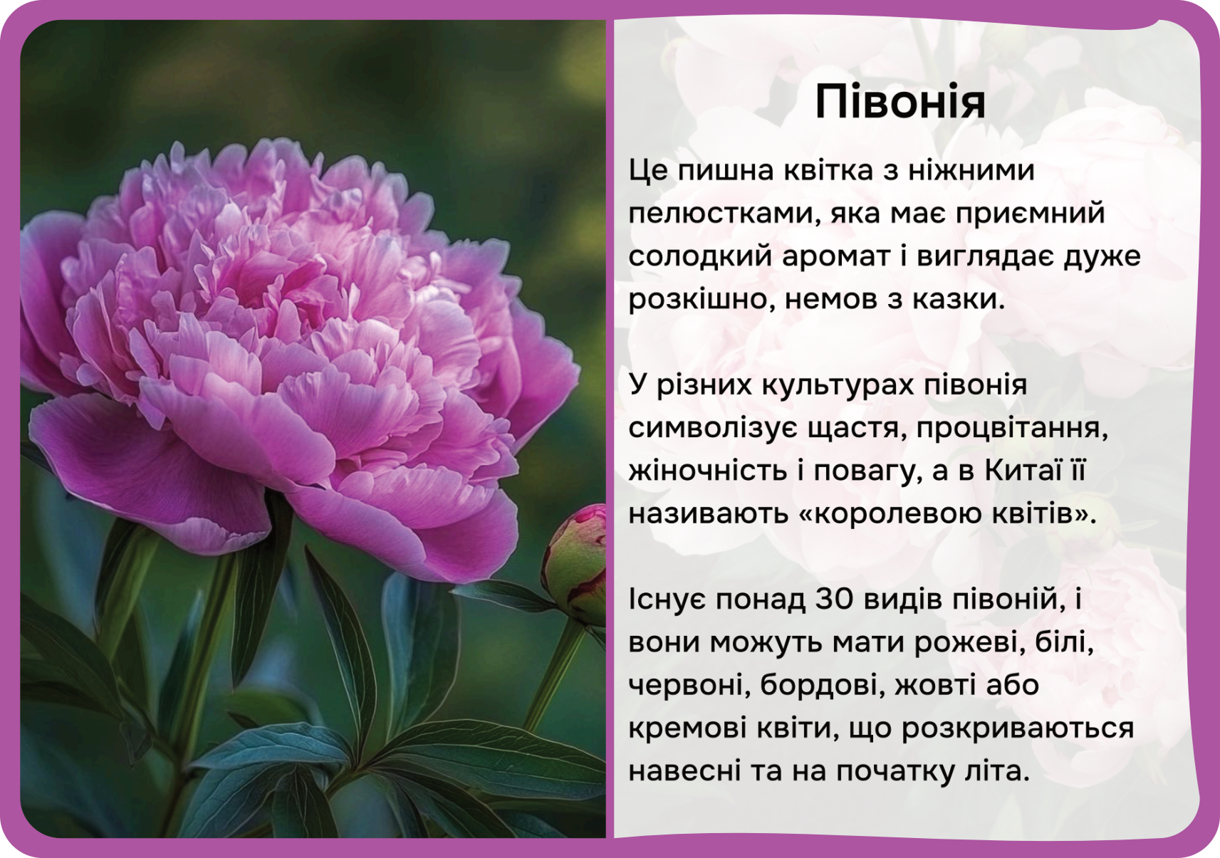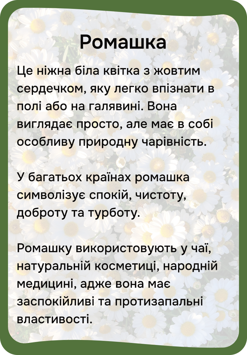 Пориньте у дивовижний світ природи разом із нашою серією карток про найкрасивіші та найцікавіші квіти світу! Кожна картка відкриває дитині нову історію — про походження, особливості та унікальні властивості кожної рослини.